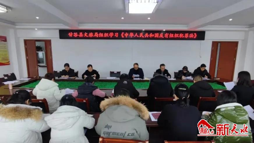新天水讯【通讯员康想珍】1月28日,甘谷县文旅局组织全体干部职工认真学习贯彻《中华人民共和国反有组织犯罪法》。
