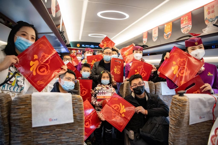 2022年1月17日,全国首列“复兴号”智能动车组“共青团号”列车开行。新华社记者 唐奕 摄