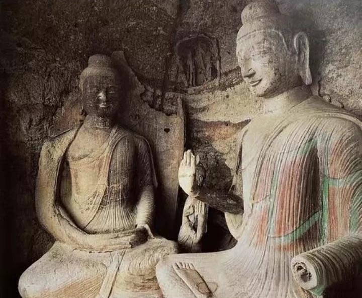 其次,它确证“仇池国”是一个深受佛教影响的政权。佛教从东汉永平十年(公元67年)传入中国,在汉代的发展还难以与本土的儒道抗衡,但经过魏晋南北朝,已普及华夏。这与长期的社会动荡自然有关,佛教的轮回转世之说,迎合了苦难现世众生的精神需求。但是,我想,这与“五胡十六国”的崛起也是否息息相关呢?这些民族,不像汉民族那样具有自深厚的文化根基,易于接受异域文化的影响,佛教的传播可能比在汉族中迅速而且普及。而佛教作为一种文化,具有很强的凝聚力。共同的宗教信仰是民族融合的必备条件,实事求是地说,在魏晋南北朝民族大融合的过程中,佛教可能发挥过一定的媒介粘合作用。“仇池国”的深受佛教影响,不仅麦积山可证,在“仇池国”的核心区域今西和县境内遗存的法镜寺石窟、八佛崖石窟、佛孔寺石窟,也能表明此点。