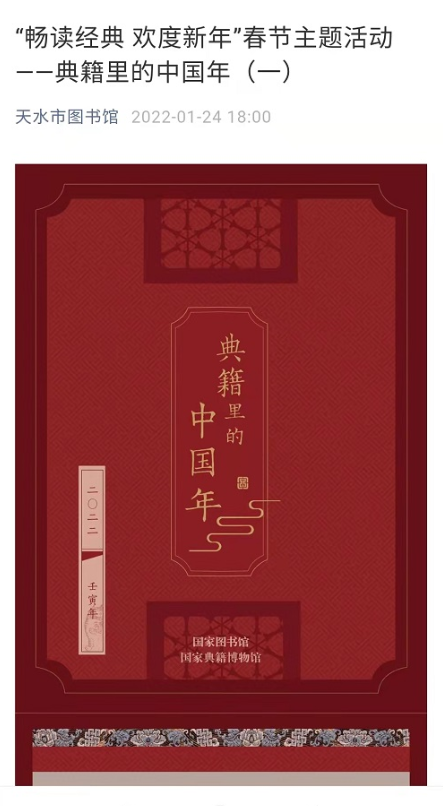 【天水文旅】天水市图书馆举办“迎冬奥 贺新春”春节系列文化活动
