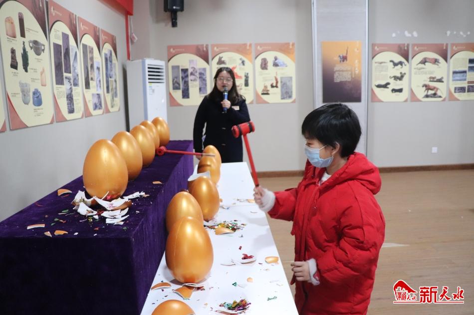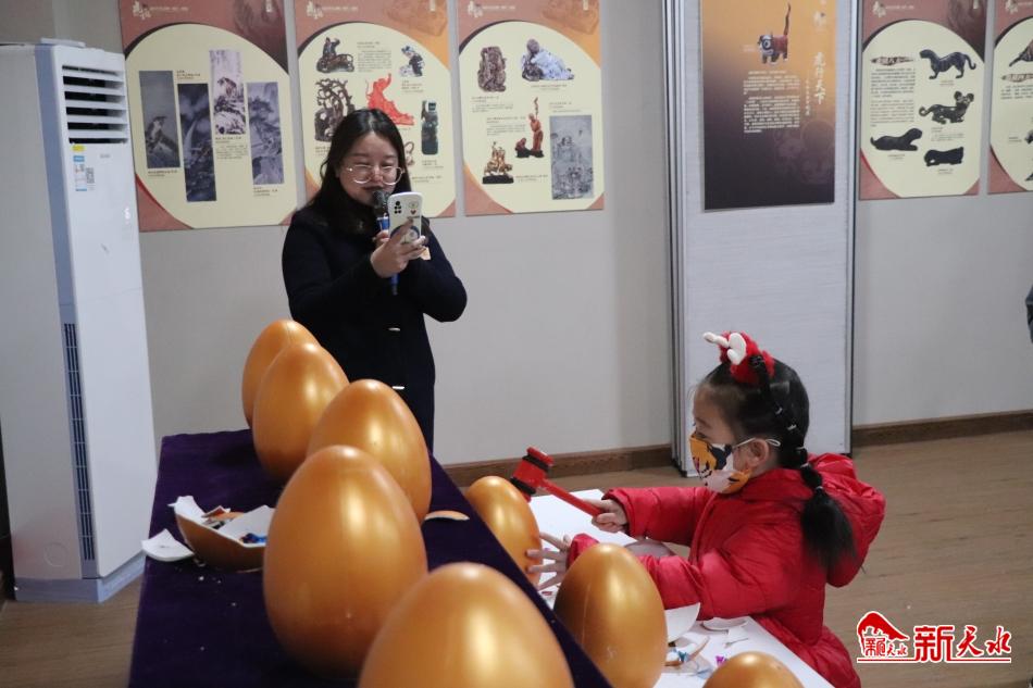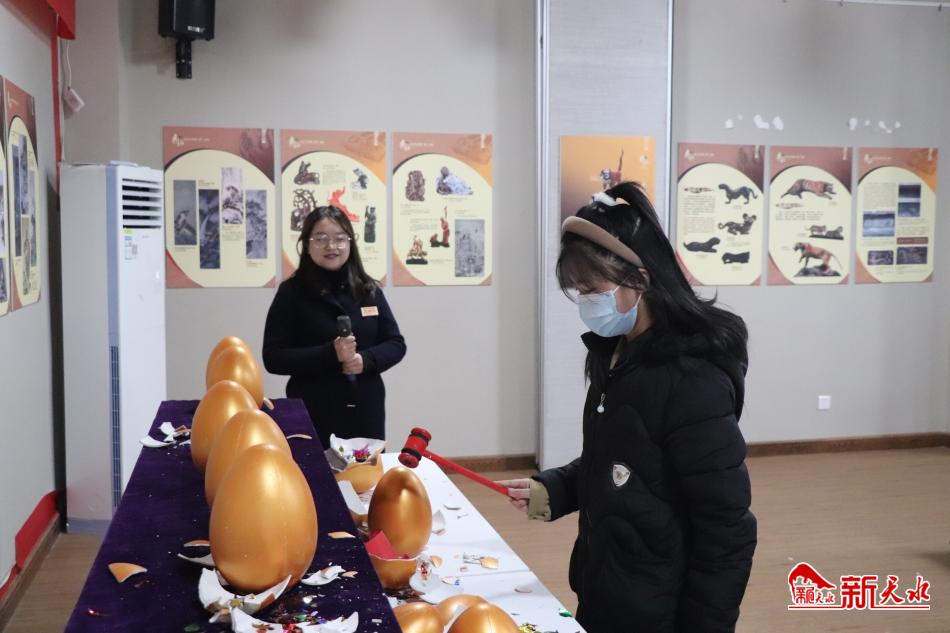 新天水讯【记者刘蕾】沐浴着新年的第一缕阳光,洋溢着节日的喜悦,在欢声笑语中迎来了张家川县博物馆举办的“金虎迎春,金蛋送喜”主题社教活动。青少年和家长们欢聚一堂,在阵阵尖叫声中砸金蛋,在欢呼声中迎新春。