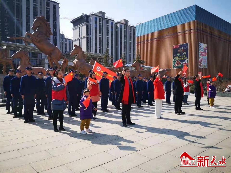 清水县组织道德模范、社会各界志愿者在新时代文明实践广场开展歌曲《领航》传唱活动