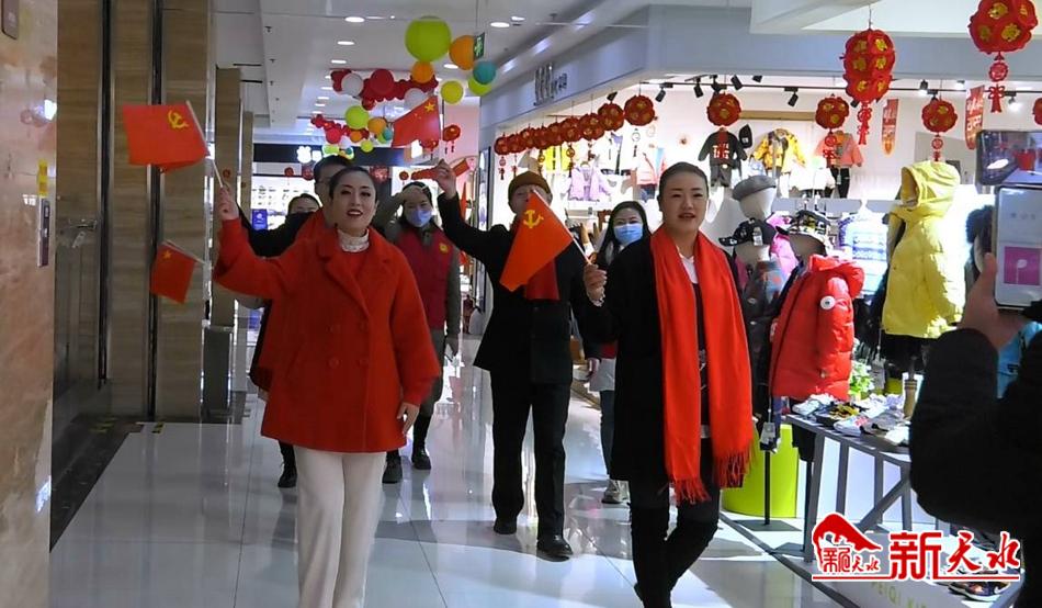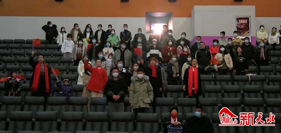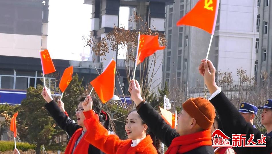 传唱队伍相聚在马跑泉市政广场和金都商业广场,带市民一起感受生活中的变化,在动人的歌声和磅礴的音乐里,将一百年以来党取得的历史性成就和国家日新月异的发展变化娓娓道来,唱出了对党和祖国深情的爱,传达出麦积人民喜迎冬奥的热情。唱到动情之处,所有人不由自主地挥舞起手中的党旗和国旗,眉目间尽显深情。 随后传唱队伍来到了天水奥斯卡国际影城(景园店),这里上映着《长津湖之水门桥》《狙击手》等多部主旋律电影。传唱队伍站在电影《长津湖之水门桥》的海报前,穿越时空和风雪与七连战士对话。深情舒畅的歌曲引起了大家的情感共鸣,吸引了不少市民围观,他们驻足倾听,举起双手打着拍子,为歌曲所感染和鼓舞,感受着歌曲中唱出的新时代美好未来。