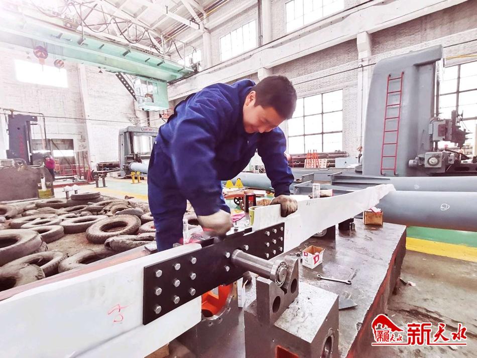 春节期间,天水锻压机床(集团)有限公司职工主动加班加点,赶制合同产品。图为2月6日生产一线的工作场景。