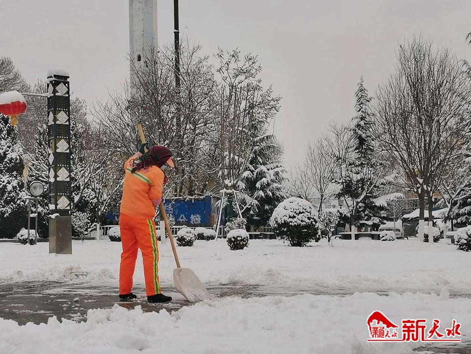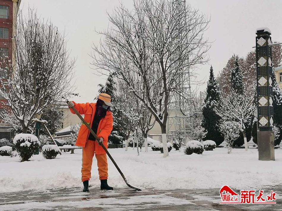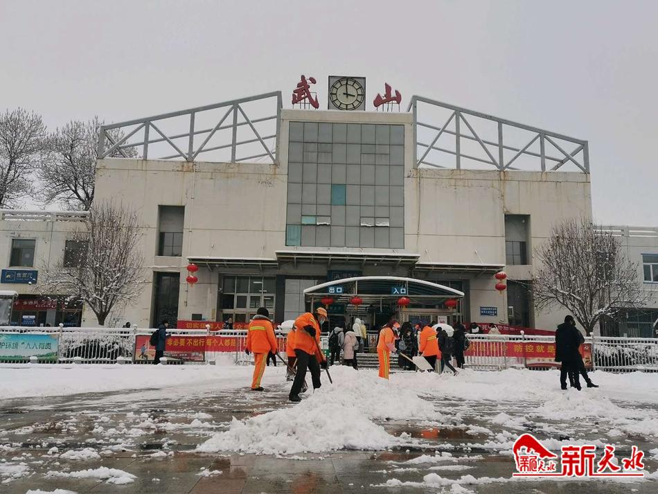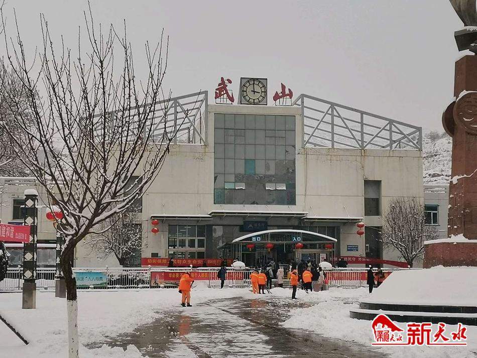 2月6日,农历正月初六,环卫工人正在清扫武山火车站广场上的积雪。连续两场大雪在给春节带来“冰雪奇缘”的同时,也给出行带来了不便。为了保障群众按时返程,环卫工人冒着严寒,加班加点清扫道路积雪。