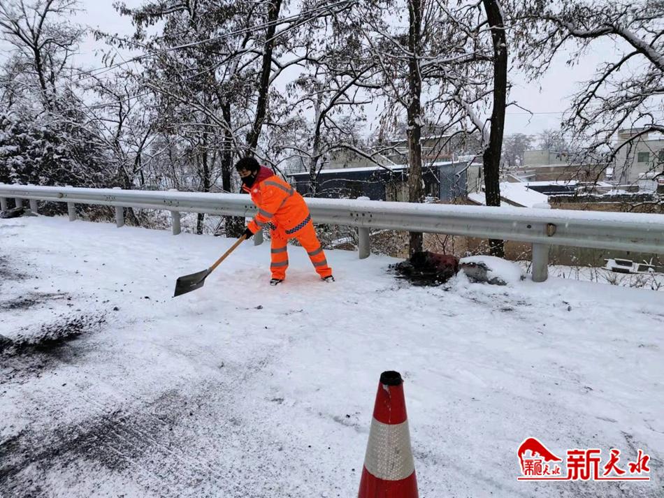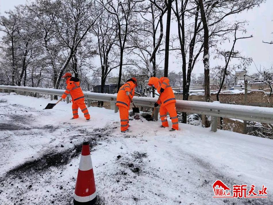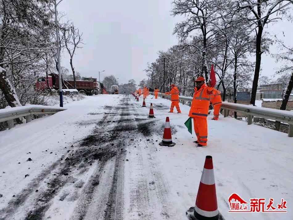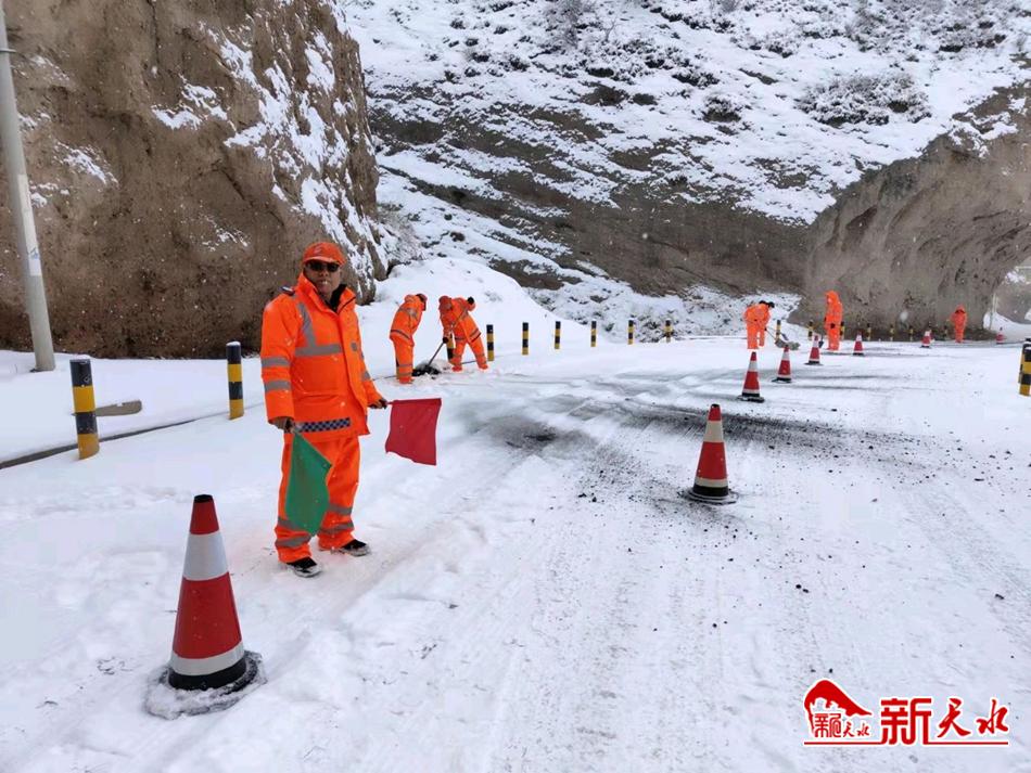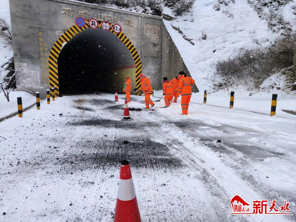 新天水讯【通讯员 胡文博 蔺旺黎】正月初五以来,甘谷县境内持续降温降雪,甘谷公路段以雪为令,迅速组织人员机械开展春节除雪保畅,分别在管养的县道303线甘武路隧道进出口、背阴、弯道、桥梁等防滑重点路段撒铺融雪剂、防滑料。