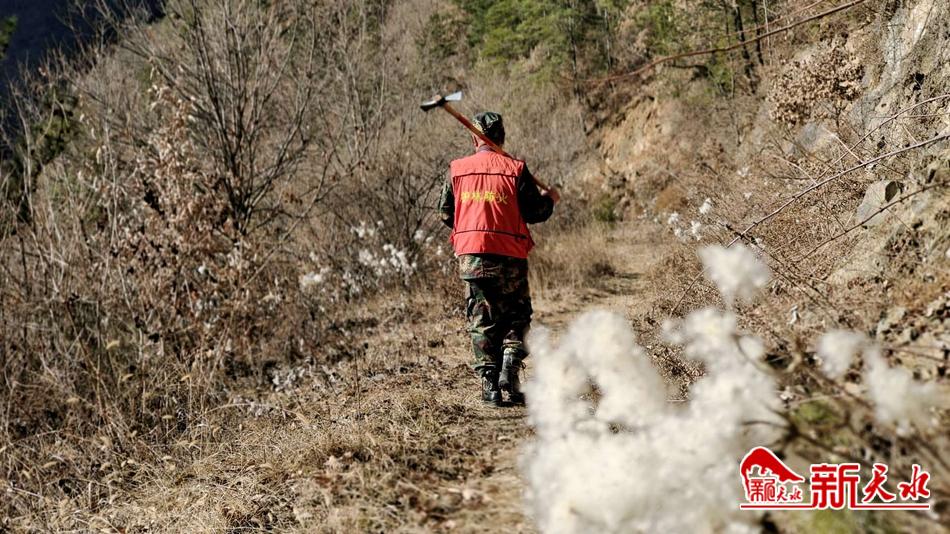 龙门林场山川奇秀,林密水清潭深,更有利桥城堡、茶马古道等著名景观,奇山秀水的美景引人入胜,但真正进入山林腹地,才知道路险峻陡峭,才能体会高永强每天为守护这绿水青山的艰辛付出。每天,高永强都要和同事提着登山防护的“洋镐”去巡山,有时候要去远一点的辖区,便带上些馍馍咸菜当作午饭。他们中午不歇,下雨不停,车辆无法开进陡峭的山林,只能徒步,远一点的山路来回需要步行六个多小时,一旦路上因为事情耽搁,就很难在太阳下山前赶回经营所里。冬日里,工作主要以巡山护林为主,一路上,高永强一行需要对林区野外用火、破坏林地、盗伐林木、猎捕野生动物等违法行为进行检查踏查,对进入山中的游客,他们会拿出背包里背着的森林防火宣传册和防火宣传二维码进行防火宣传教育。