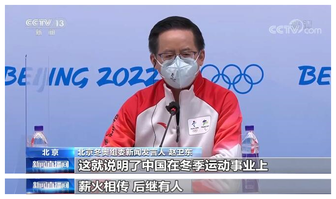 北京冬奥组委新闻发言人 赵卫东:这就说明了中国在冬季运动事业上薪火相传、后继有人。同时也说明了中国是奥林匹克理想的坚定追求者、行动派。