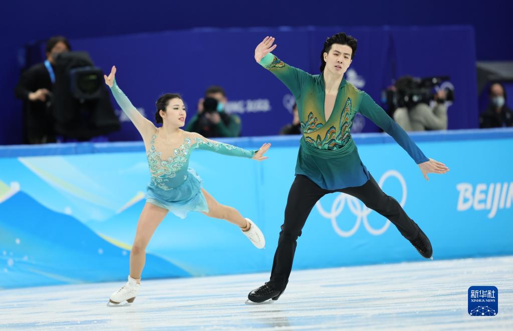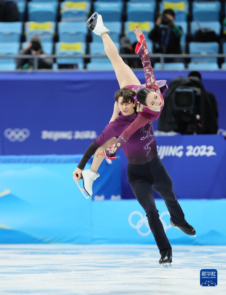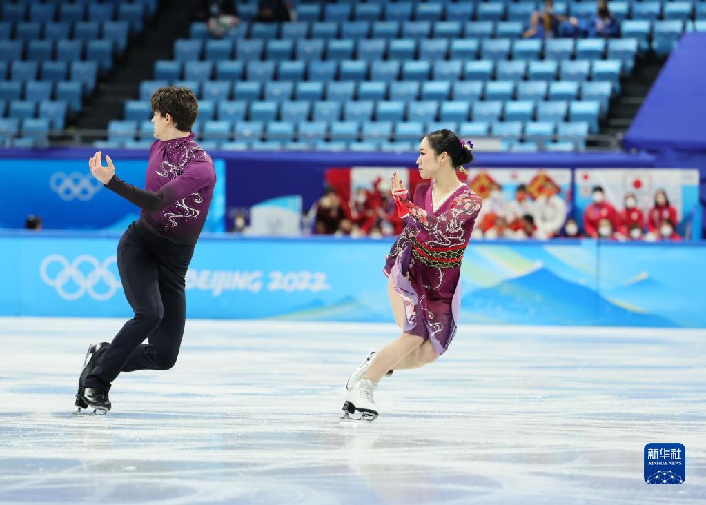 2月7日,日本选手小松原美里(右)、小松原尊在比赛中。
