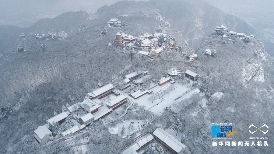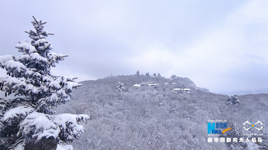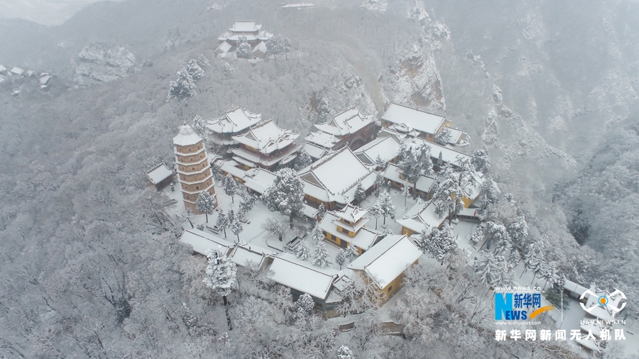 2月6日,无人机拍摄的甘肃省平凉市崆峒山景区雪景。新华网发(苏保烨 摄)