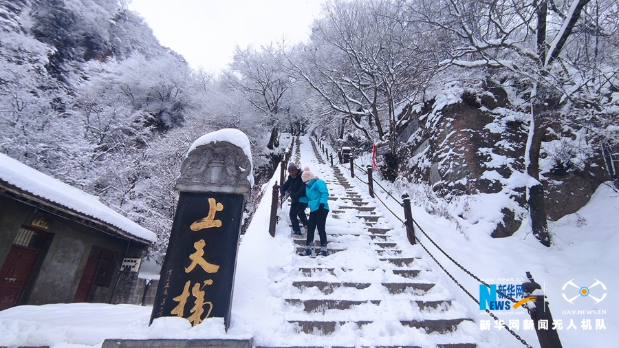 2月6日,游客在甘肃省平凉市崆峒山景区上天梯上。新华网发(李维轩 摄)