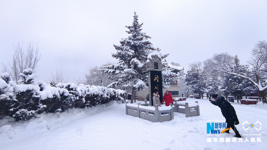 2月6日,游客在甘肃省平凉市崆峒山景区合影。新华网发(李维轩 摄)