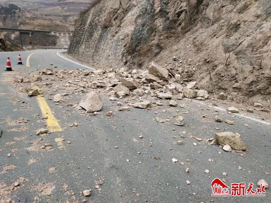 新天水讯 近日,受雨雪天气影响,G310线K1459+500史家窝隧道口(出口)处出现山体塌方。麦积公路段组织人员赶赴现场,在塌方处设立锥筒、警示牌等标志,并及时清理了道路落石,确保了车辆出行畅通安全。(魏向波)