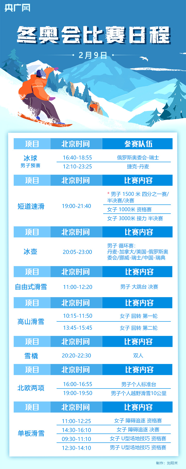 一图速览|北京冬奥会2月9日赛程 将产生6枚金牌