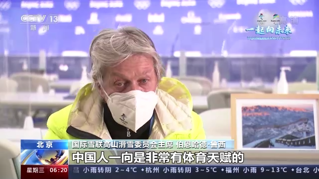 国际雪联高山滑雪委员会主席 伯恩哈德·鲁西:经过这届北京冬奥会,肯定有越来越多中国人会爱上冰雪运动,并且会越来越好。中国人一向是非常有体育天赋的,而且我还发现大家都很会跳舞,成为优秀的滑雪运动员不是难事。