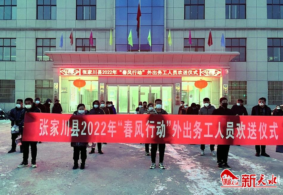 新天水讯 2月9日,张家川县举行2022年“春风行动”首批外出务工人员欢送仪式,集中欢送37名务工人员赴江苏务工。
