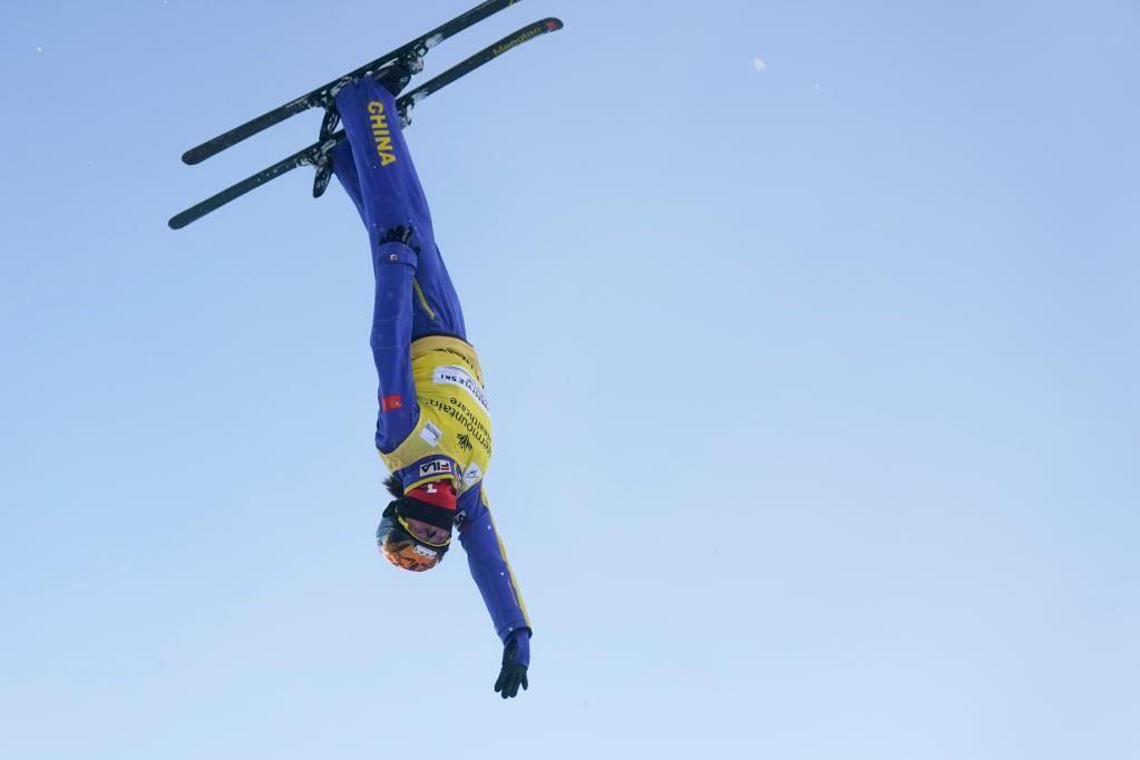 1月12日,徐梦桃在美国帕克城举行的自由式滑雪世界杯女子空中技巧比赛中。新华社/美联