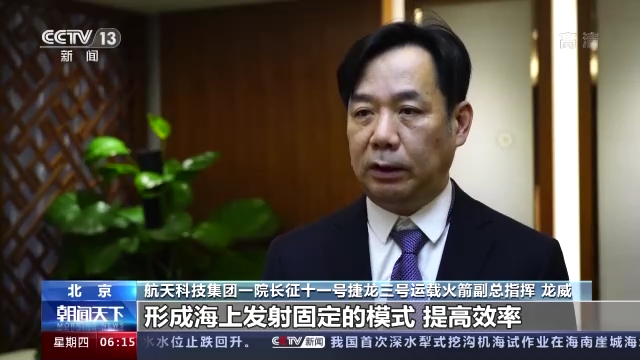 航天科技集团一院长征十一号捷龙三号运载火箭副总指挥龙威:后续我们也想通过再多打几发,形成海上发射固定的模式,提高效率。