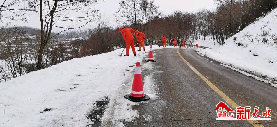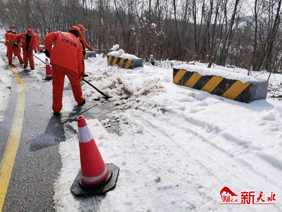 近日,清水县境内迎来大范围的降雪天气,由于气温降低,路肩积雪严重,给过往车辆带来极大的安全隐患,清水公路段及时组织人员在S218线清理路肩积雪,确保道路安全畅通。