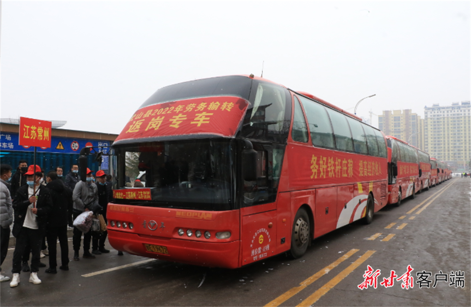 2月10日,武山县1500多名赴新疆、江苏、浙江、上海等地务工人员统一乘坐专车启程,伴随着25辆大巴车发动行驶,他们也开启新一年勤劳致富的务工生活。
