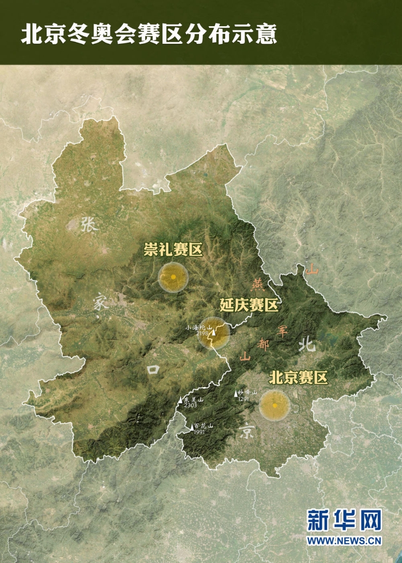 北京冬奥会赛区分布示意图