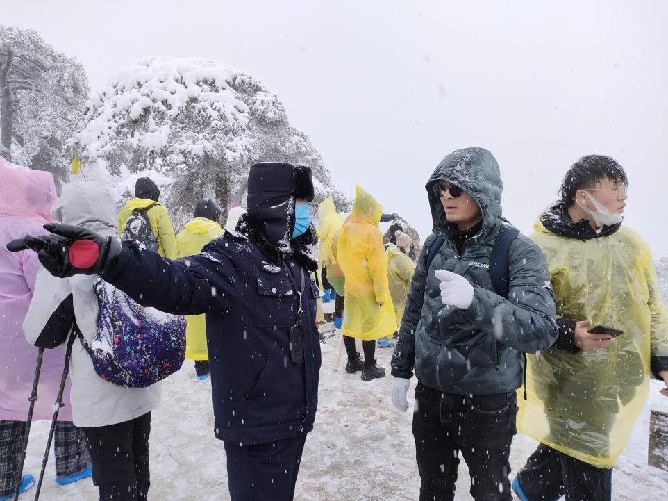 严寒阻挡不了八方游客因黄山冬雪慕名而来。大年初四、初五两天,黄山风景区进山人数均在1万人以上,与去年同期相比有了明显增长。“冬雪是黄山五绝之一,这么美的景色,我们希望更多的人能看到!”汪新平和徐高云都是摄影爱好者,工作之余他们还总是担任着黄山义务宣传员的职责。这个春节,他们再一次把黄山雪后的美景、浓浓的年味以及干部职工抗冰雪保畅通的画面记录下来、传播出去。