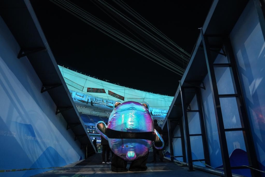 1月26日,在国家体育场(鸟巢)内,“冰墩墩”等待上场。新华社记者彭子洋摄