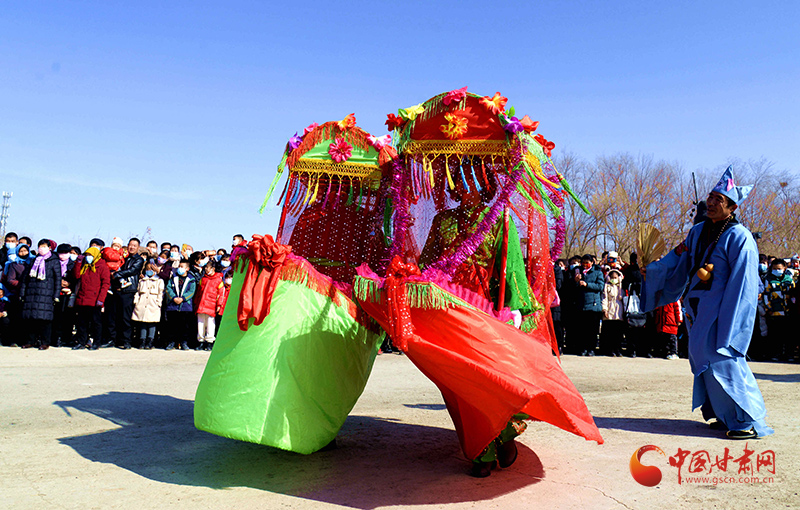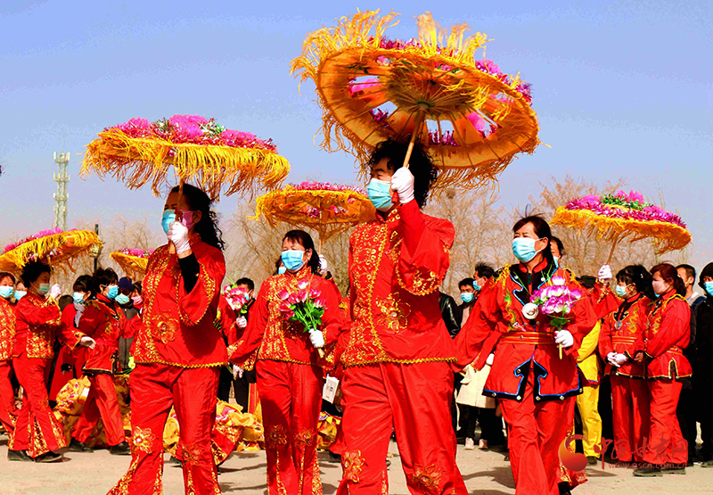 2月10日,大年初十,民勤县乡村记忆博物馆锣鼓喧天,场面震撼,伞、鼓、棒、花、丑竞彩,秧歌阵型变化多样,队员动作集飞旋、刚劲、勇猛、绚丽、诙谐于一体,呈现出粗犷豪放、潇洒飘逸、勇往直前的壮丽景象。