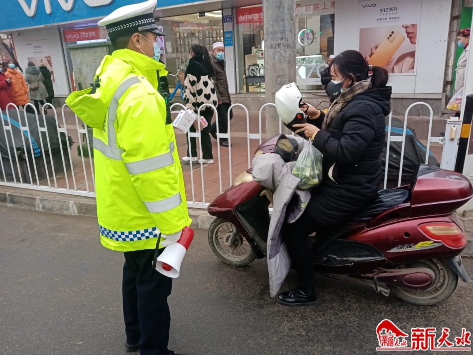 新天水讯【记者余碧波】为进一步提高广大群众道路交通安全意识,助力创建省级文明县城,预防和减少春节期间道路交通事故,2月11日起,张家川回族自治县公安局交警大队持续开展“一盔一带”集中整治劝导活动。