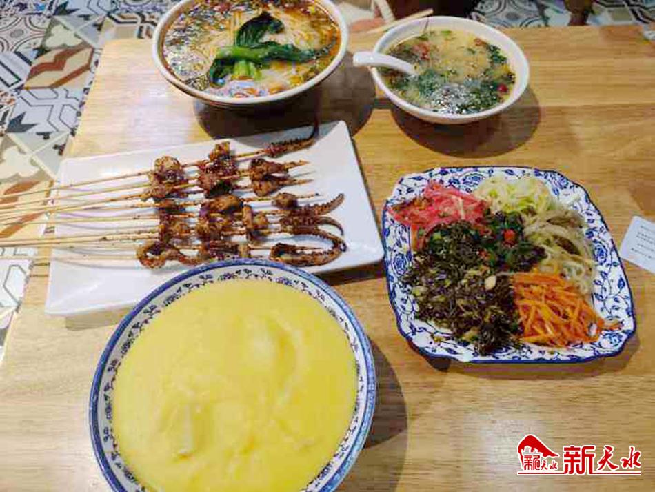 “我要一碗鸡丝碎面。”“我要一碗烩菜。”“我要几个串串。”……市民刘静一家三口人正在这里点餐。