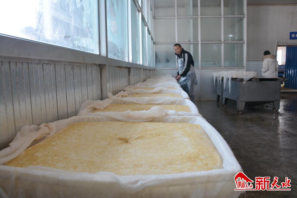 2月13日,清水县晨阳豆制品加工厂车间里,浓浓的豆香味扑面而来。生产车间里,蒸汽缭绕,数名工人正在紧张忙碌着,一切显得有条不紊。在车间一角,已经成品的豆制品成品整装待发。