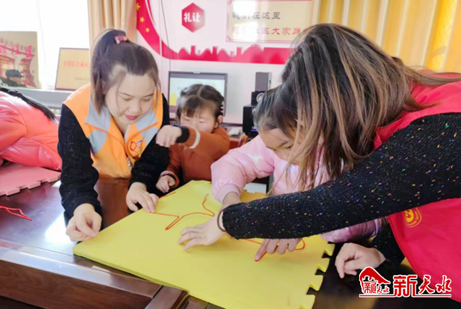 社区的工作人员还带领辖区留守儿童制作了中国结手工,每个儿童手拿红色丝线,跟着工作人员一步一步折叠。在制作的过程中,他们相互帮助、相互学习,将虎年大吉,虎虎生威的喜庆气氛融入剪纸中,现场气氛其乐融融。