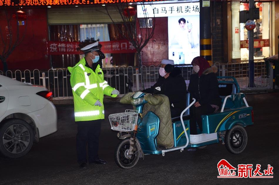 为确保辖区道路交通持续安全、稳定,连日来,张家川回族自治县公安局交警大队在辖区城区路口设置临时检查点,开展夜查酒驾整治行动,筑牢交通安全防线。行动中,执勤民警、辅警除了重点查处酒驾醉驾外,还对无牌无证、超员超载和摩托车、电动自行车骑乘人员不佩戴安全头盔、机动车驾乘人员不使用安全带等违法行为进行查处,坚决做到“发现一起、查处一起、教育一起”。 新天水记余碧波 摄