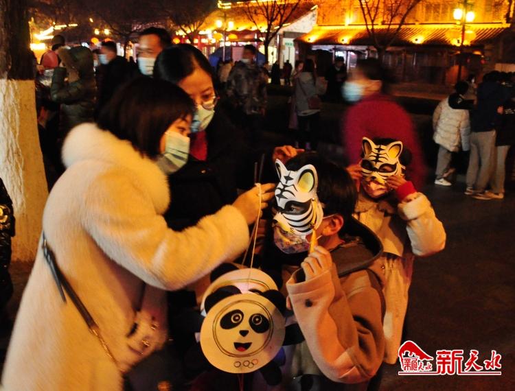 手里提着冰墩墩,头上戴着虎面具。2月15日晚,虎年元宵夜,秦州的街头巷尾,孩子们在正月十五玩花灯时不忘分享冬奥的乐趣。当晚,我市群众在欢乐祥和的气氛中欢度元宵节。