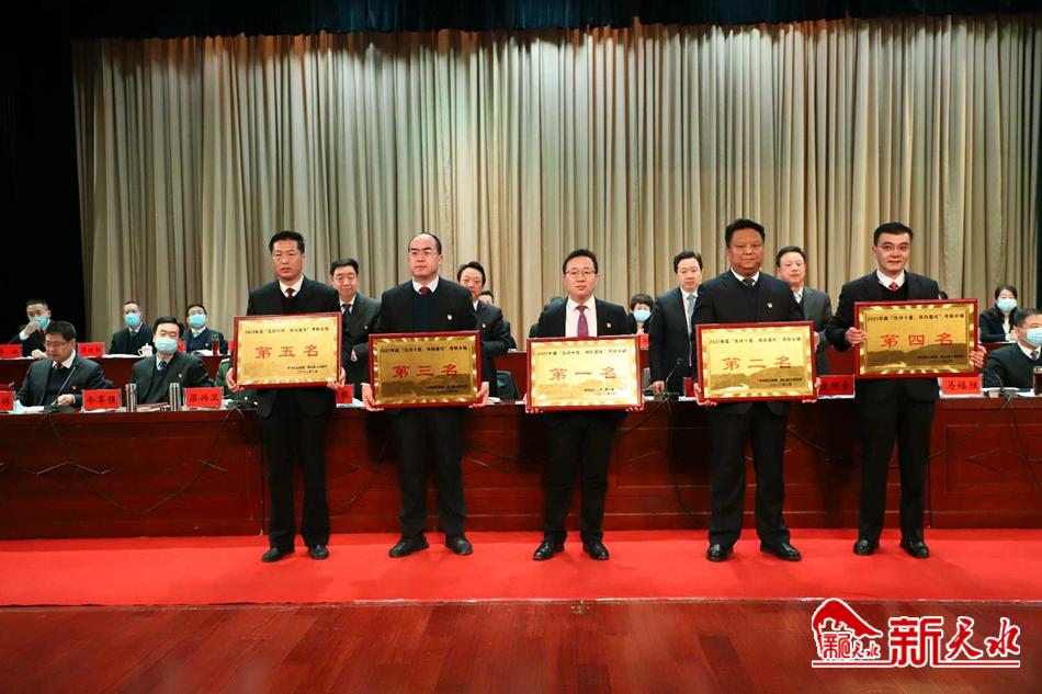 武山县委、县政府对2021年度“五评十星、双向量化”考核排名前五名的洛门镇等5个乡镇,前八名的县委办等8个党群部门,前九名的县政府办等9个政府工作部门,前六名的县劳务输转服务中心等6个政府直属事业单位及部分二级单位,前九名的国家税务总局武山县税务局等9个驻县单位进行了表彰。