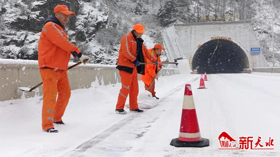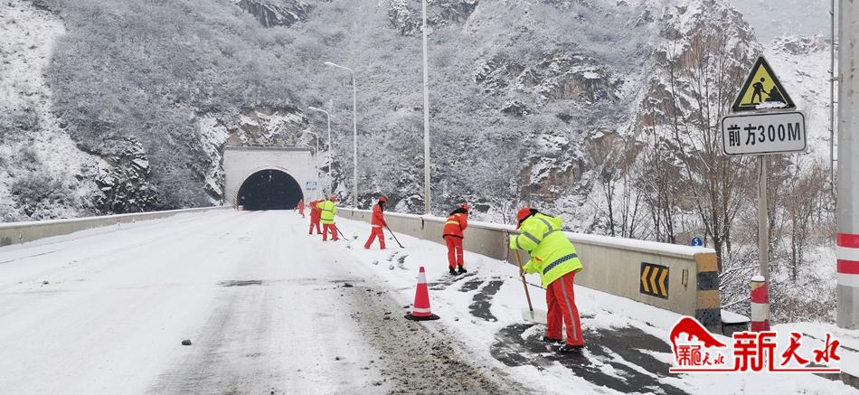 新天水讯【通讯员 冯文茜】受冷空气影响,17日夜间清水县境内普降中雪,清水公路段提前部署除雪防滑保畅工作,第一时间组织干部职工上路除雪防滑保畅通,保障人民群众出行安全,确保公路交通安全畅通。