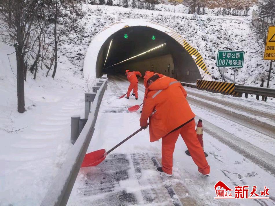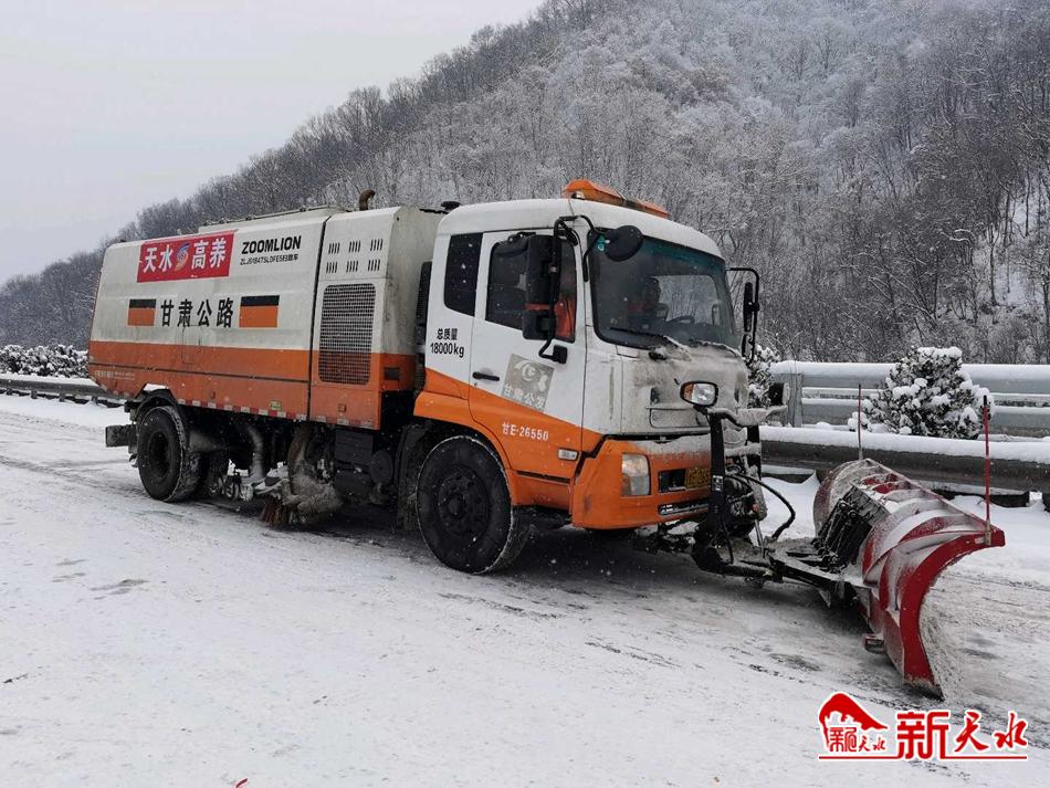 接到气象预警后,天水公路事业发展中心高速公路养护所全员进入应急状态,对重点路段预撒布融雪剂。降雪后,该所以雪为令,立即组织人员机械上路除雪保畅,采用多功能除雪车进行铲雪推雪,在陕甘省际接头路段、急弯陡坡、易结冰积雪和隧道进出口等重点路段多频次撒布融雪剂,机关人员在宝天高速桥梁路段清除积雪。同时加大对G8513平天高速天水段督查力度,督促养护企业及时除雪防滑,全力保障高速公路安全畅通。