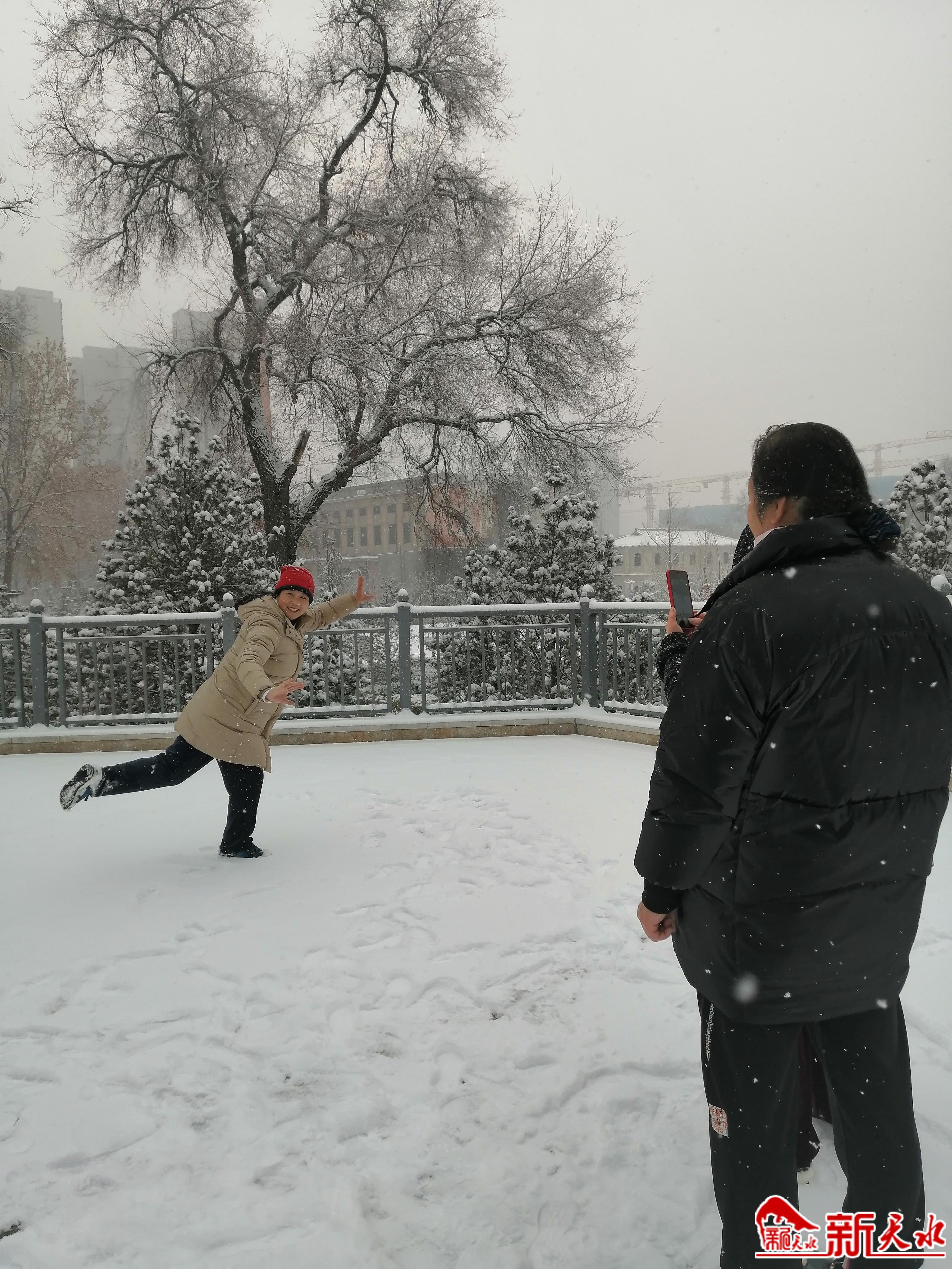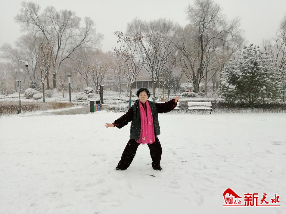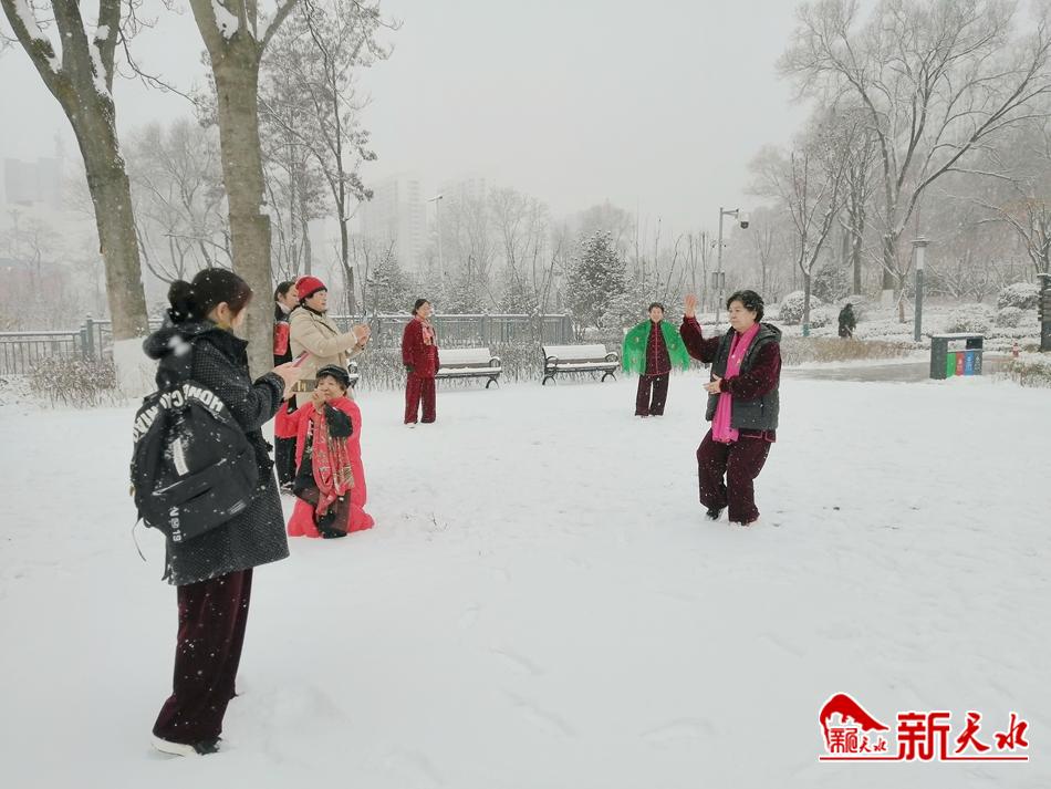 冰天雪地中,工作人员已开始清理通道上的积雪,不少市民则纷纷来到弘文园踏雪赏景,有的人打开手机边走边拍雪景视频,有的女士撑开艳丽的围巾拍照留影,有的妈妈带着孩子堆起雪人,有的阿姨在铺满积雪的空地上打起太极拳,还有的大妈在扑簌簌的雪地中舞起了扇子和剑……纷纷扬扬的春雪,带给人们无尽的乐趣。新天水记者王莹 摄