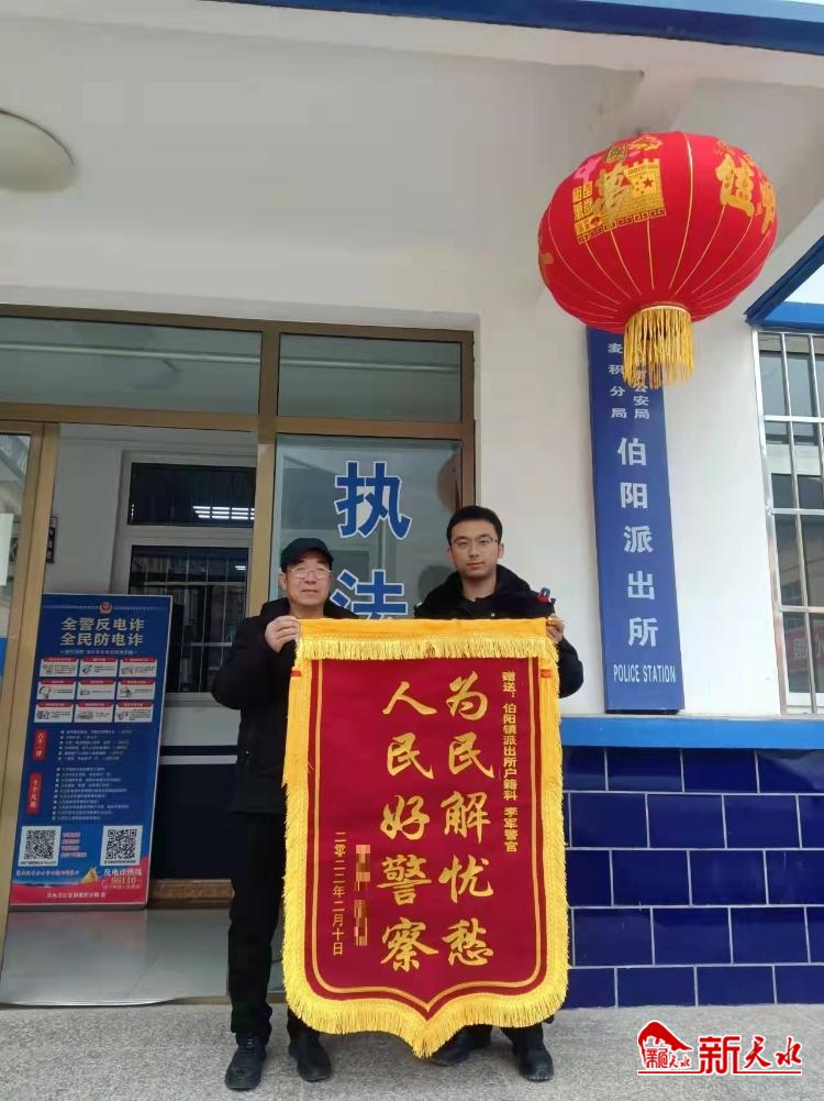 新天水讯【记者王晓华】2月16日下午,麦积区市民刘先生来到麦积公安分局伯阳派出所户籍室,将一面写有“为民解忧愁 人民好警察”字样的锦旗送到民警手中,对民警热心帮他外孙女办理户口的工作态度表示赞扬。