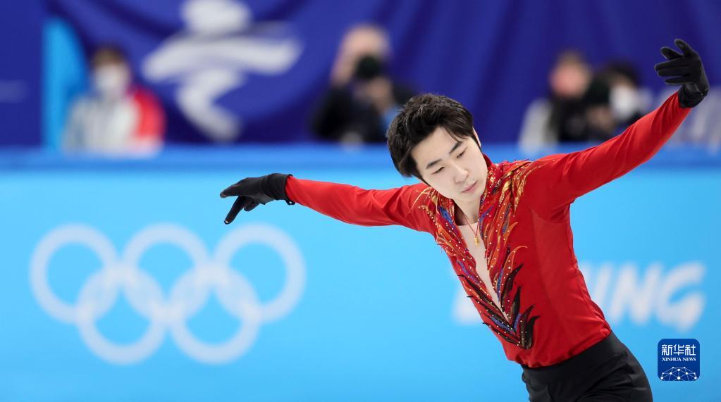 2月10日,中国队选手金博洋在花样滑冰男子单人滑自由滑比赛中。新华社记者兰红光摄