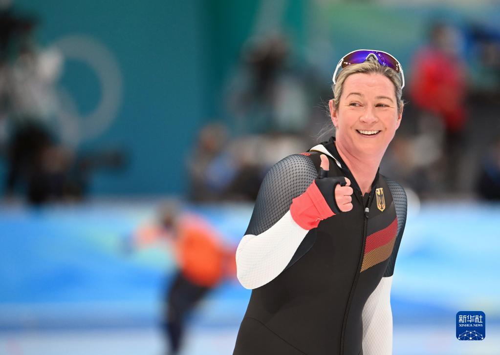 2月5日,德国队选手克劳迪娅·佩希施泰因在速度滑冰女子3000米决赛后。新华社记者武巍摄
