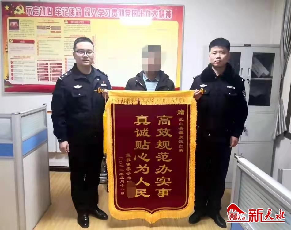 2月18日,武山县温泉镇李子沟村的李先生来到武山县公安局温泉派出所,将一面写有“高效规范办实事 真诚贴心为人民”的锦旗递到了民警手中,以此来感谢民警不辞辛苦,帮助自己找回了遗失的订婚戒指。