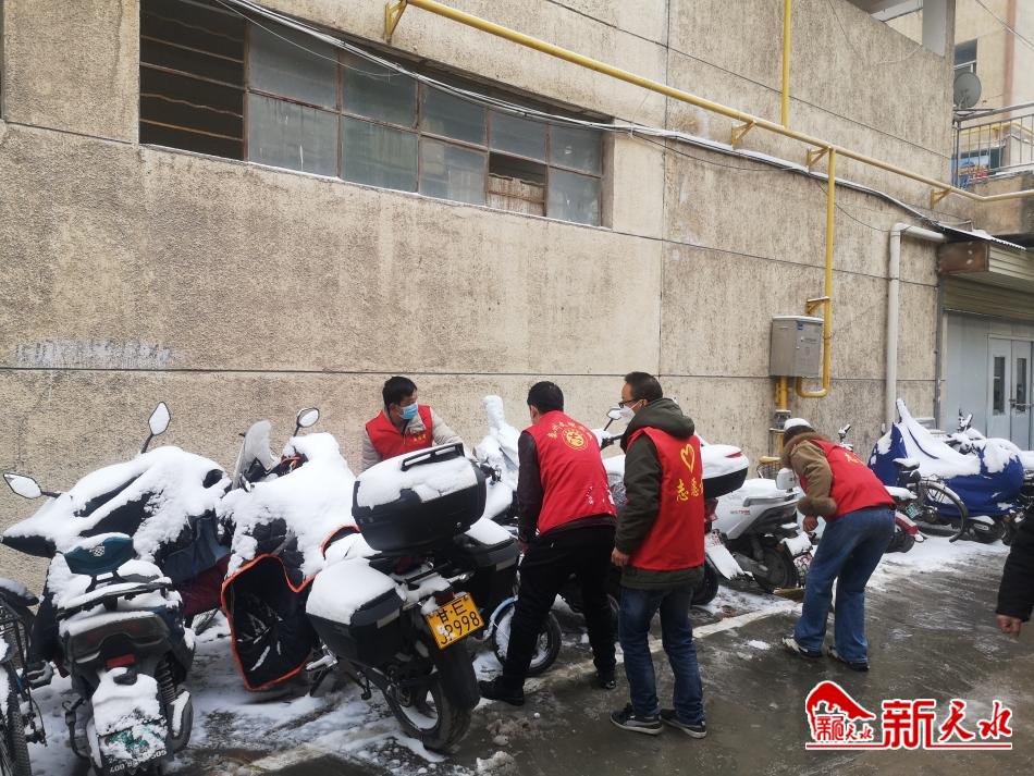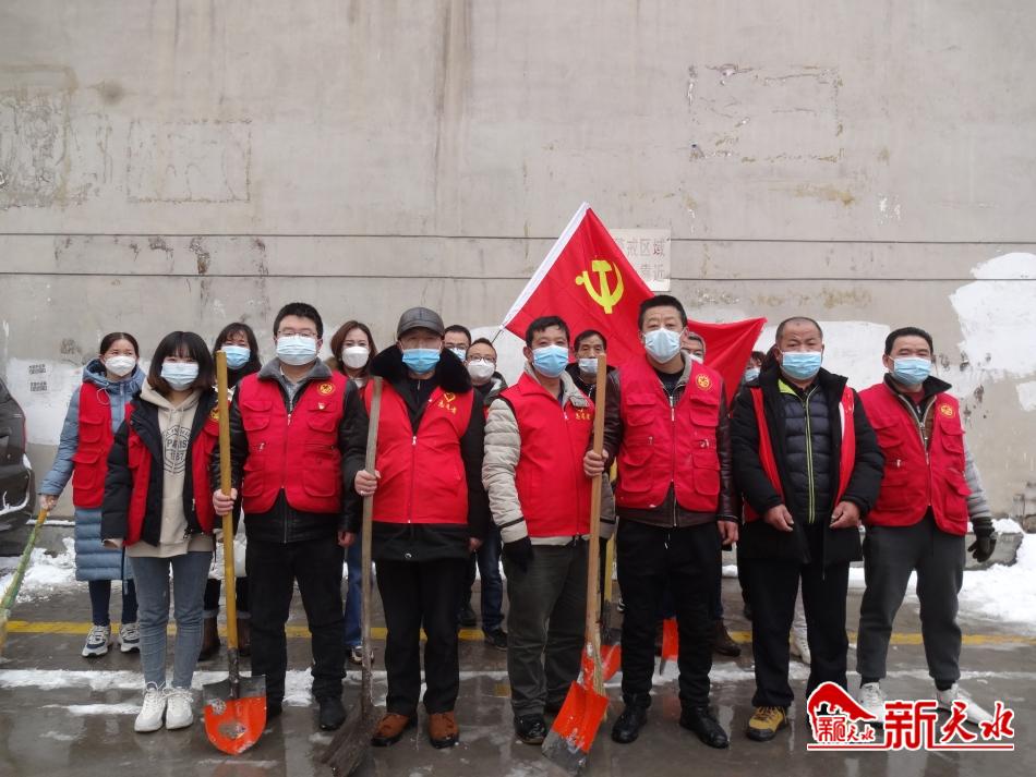 新天水讯【记者安蓉】2月18日,秦州区东关街道忠武巷社区与天府小区党支部志愿者在辖区的天府小区开展“周末环境卫生大扫除”活动,清扫辖区公共路段积雪、清理整治小区车辆乱停乱放等现象,用实际行动打造舒适整洁的人居环境。