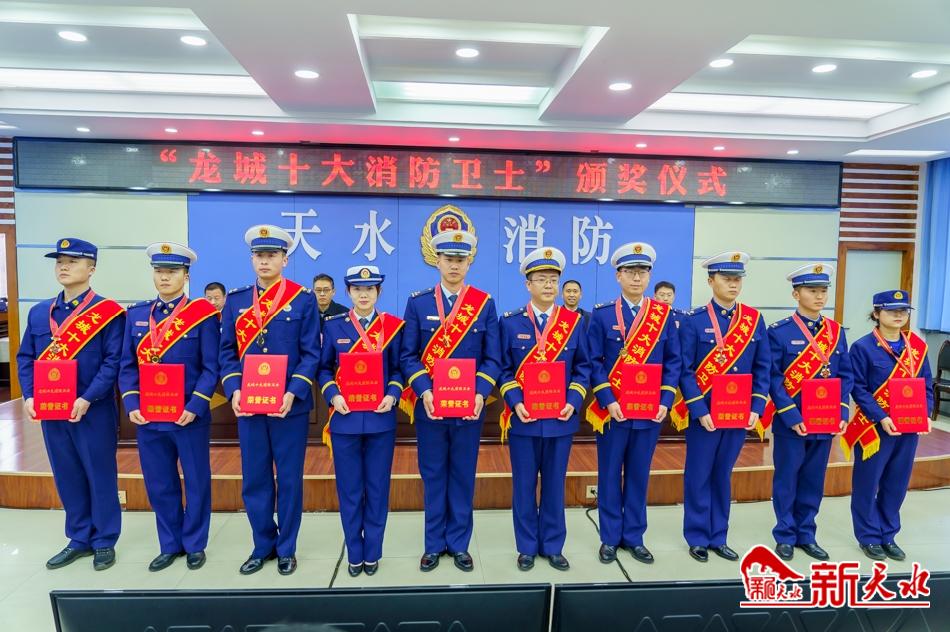 近年来,在各级党委、政府的坚强领导下,全市消防救援队伍深入学习贯彻习近平新时代中国特色社会主义思想,忠实践行习近平总书记重要训词精神,对标应急救援主力军、国家队职能定位,深化改革创新、加快转型升级,在抗疫情、战洪峰,防风险、保平安,抓改革、促发展等严峻考验中,实现体制一新、结构一新、格局一新、面貌一新。在走中国特色消防救援新路上迈出了坚实步伐、展现了天水消防新作为,在“两员”队伍建设等亮点工作打出了“天水名片”,涌现出一批先进典型。其中,天水市消防救援支队新华路特勤站三级消防士王志文、天水市消防救援支队新华路特勤站三级消防士龚朕、清水县永清消防救援站三级消防士杨斌、天水市麦积区天河消防救援站二级消防士刘兴东、天水市消防救援支队后勤保障科消防文员张艳芳、甘谷县冀城消防救援站专职消防员陈鹏、天水市秦州区天水郡消防救援站站长张强、天水市秦州区消防救援大队中级专业技术职务王朋强、甘谷县消防救援大队大队长牛翔宇、天水市消防救援支队组织干部科副科长郭沁10名同志被授予“龙城十大消防卫士”称号。