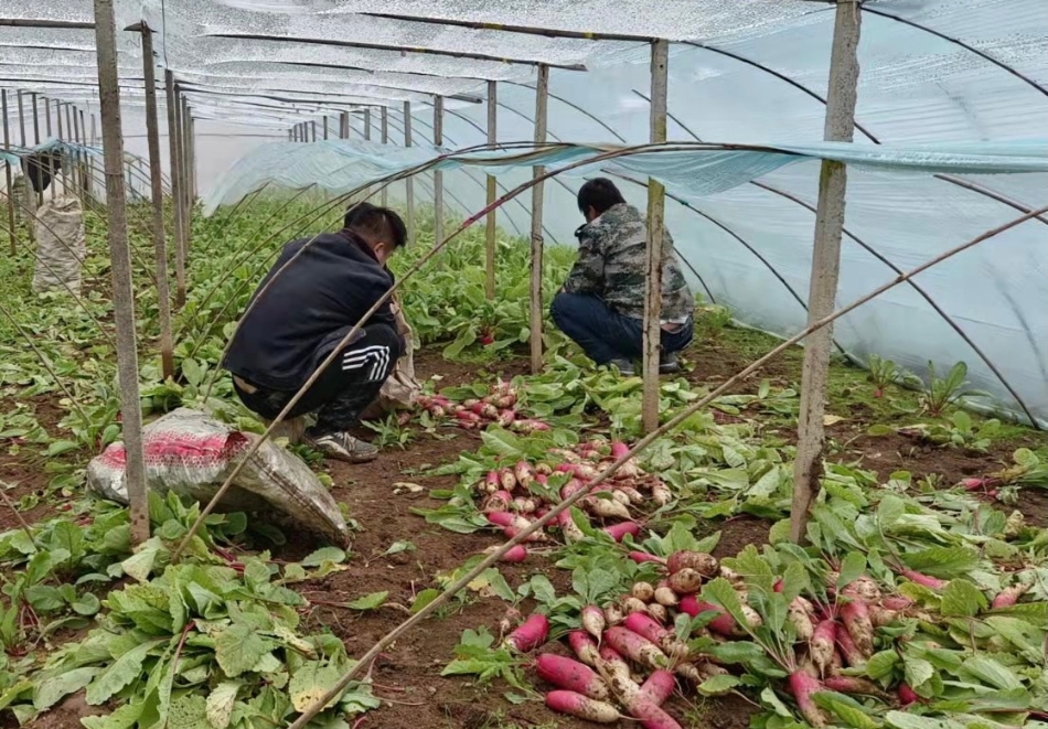 “你瞧,咱的水萝卜皮薄味美、口感脆甜,白里透红像不像‘水人参’。”一个个水萝卜被村民李淑巧小心翼翼拔起来,虽然大棚外天气微凉,但她内心一团火热,脸上洋溢着收获的喜悦。