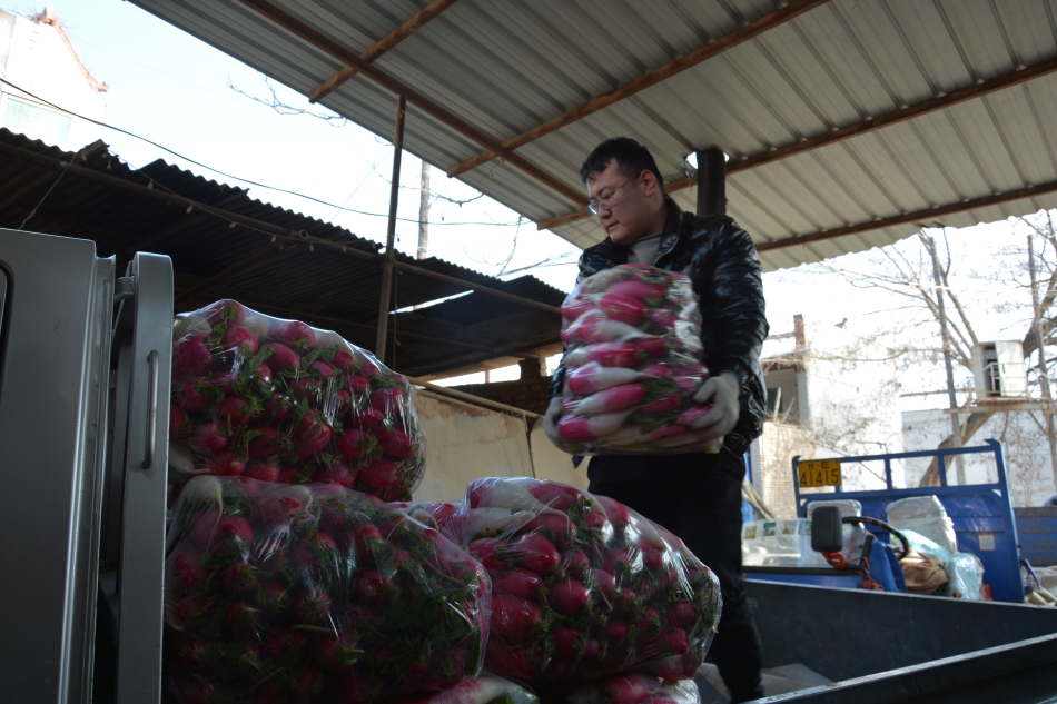 “我们村的自然条件好,村民种出来的水萝卜味道好,而且上市时较早,所以价格和销路一直很稳定,在春节期间的批发价要在3.5元/斤。”李军清在村里从事蔬菜代办近30年了,销往甘谷县城的15袋750斤水萝卜刚刚装车,“都是老顾客提前预订,根本不愁销。现在正是大量上市,我昨天就销售了5000多斤水萝卜,主要销往周边市区和兰州、西安、陇西等地。”