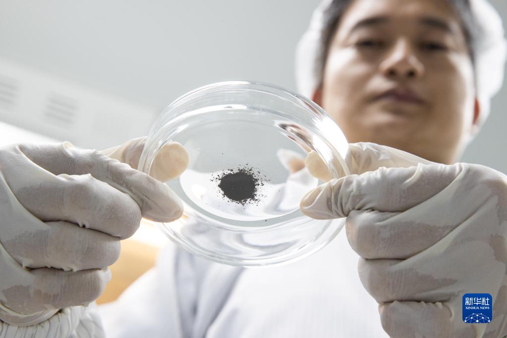 2021年10月15日,在中科院地质与地球物理研究所月球样品洁净室,田恒次副研究员在处理月球样品。新华社记者 金立旺 摄