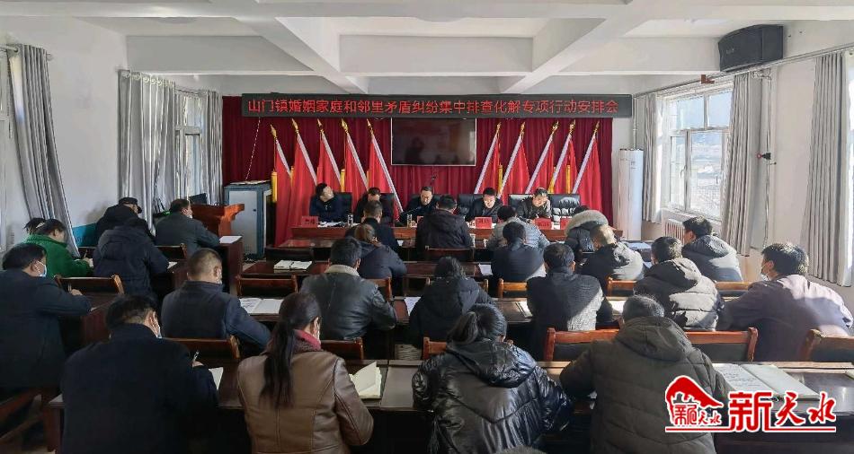 新天水讯【通讯员 赵南琦】2月24日,清水县山门镇召开婚姻家庭和邻里矛盾纠纷集中排查化解专项行动安排会,传达学习省、市、县领导关于矛盾纠纷排查化解工作重要批示精神和《清水县关于开展全县婚姻家庭和邻里矛盾纠纷集中排查化解专项行动方案》,就全镇矛盾纠纷大排查大调处专项行动进行全面安排部署。
