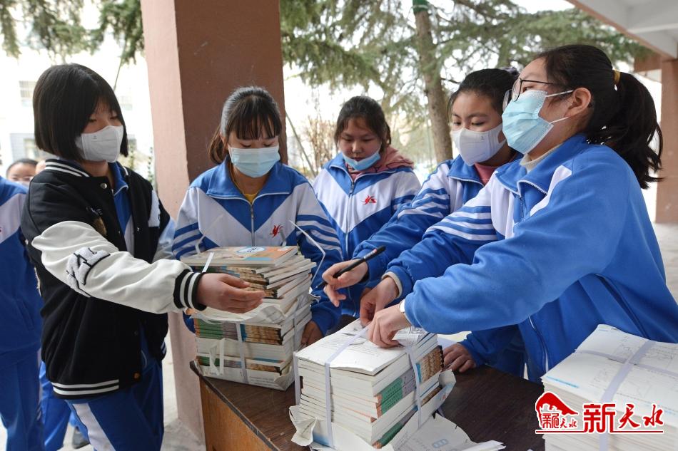 2月25日,天水市育生中学的学生领取新学期课本。