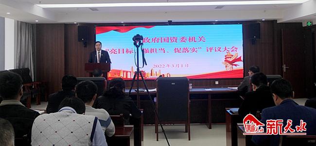 新天水讯 3月1日,天水市政府国资委召开2022年“亮目标、强担当、促落实”评议大会,机关各科室负责人依次脱稿发言,对本科室2022年的目标任务、实现路径及保障措施作出了郑重承诺,立下了“军令状”。
